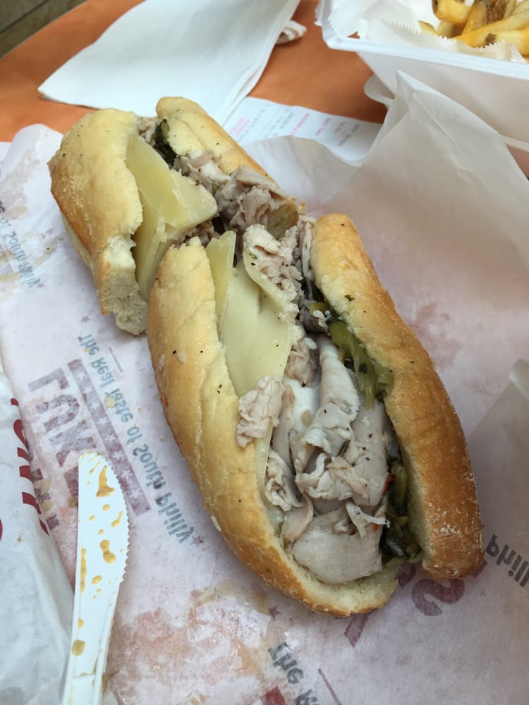 Sharp provolone, turkey, sweet and hot peppers, lettuce, tomato and onion.